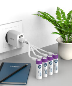 - Li-ion oplaadbare AA batterijen met 4-in-1 USB-C oplaadkabel
