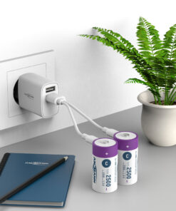 • Li-ion oplaadbare C batterijen met 2-in-1 USB-C oplaadkabel