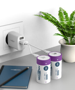 - Li-ion oplaadbare D batterijen met 2-in-1 USB-C oplaadkabel