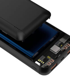- Een compacte en handzame powerbank, die behalve standaard in- en uitgangen tevens is voorzien van een USB-C in- en uitgang