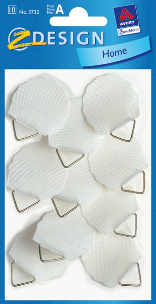 Bijzonder stevig materiaal met draadophanging voor het ophangen van diverse artikelen met een gewicht van 800-1200 gram. Vochtig maken, op vetvrije en stofvrije ondergrond plakken en ca 2 uren laten drogen. Pak a 8 stuks.