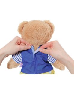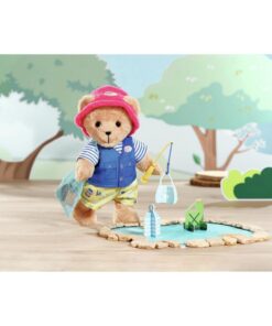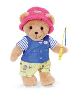 In deze stijlvolle outfit valt Beer niet alleen op, maar is bovendien goed uitgerust: naast een schattig shirt met vest, broek en pluizige, roze vissershoed omvat de set ook een hengel die kan worden gebruikt om allerlei voorwerpen te vangen die niet in het wild thuishoren: vuilniszakken, jerrycans, oude blikjes – Baby Born Beer vist het allemaal op uit het meer voor een schoner milieu. Maar niet alleen de beer kan zich inzetten voor het milieu: OokBaby Born kan de outfit van 43 cm aantrekken.