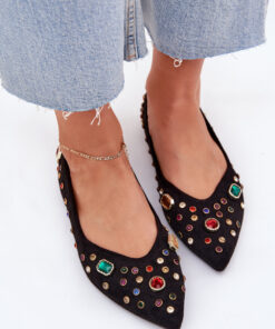 Dames ballerina’s gemaakt van eco-suède, versierd met kristallen die ze elegantie en glans geven. De puntige neuzen verlengen optisch de benen, waardoor de schoenen een slanke en stijlvolle uitstraling krijgen. Perfect voor formele en alledaagse gelegenheden.