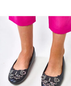 Ballerina’s met een decoratieve vlinder met zirkonia’s zijn een charmant en elegant model dat een subtiele glans toevoegt aan elke outfit. Gemaakt van hoogwaardig ecologisch leer, combineren ze draagcomfort met een tijdloze stijl. De ronde neus zorgt voor comfort, terwijl de platte hak stabiliteit biedt tijdens het lopen. Een bijzonder accent is de decoratieve vlinder met zirkonia’s, die subtiel de vrouwelijke aard van de schoenen benadrukt. De inlegzool van ecologisch leer verhoogt het draagcomfort, waardoor de ballerina’s zowel in alledaagse als meer elegante outfits kunnen worden gedragen.
