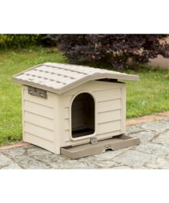 - Kunststof hondenhok van kunsthars met afneembare bodem voor een comfortabelere reiniging en een verstelbaar dak in twee standen voor een betere ventilatie