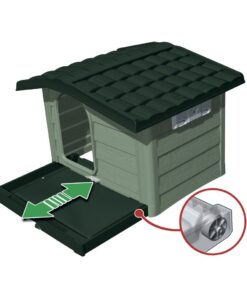 - Kunststof hondenhok van kunsthars met afneembare bodem voor een comfortabelere reiniging en een verstelbaar dak in twee standen voor een betere ventilatie