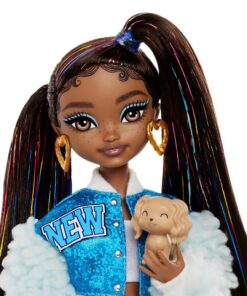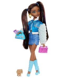 De Barbie Dream Besties poppen moedigen kinderen aan om hun unieke talenten met de wereld te delen, net als Barbie ‘Brooklyn’! Barbie ‘Brooklyn’ droomt ervan om een wereldberoemde choreograaf te worden. Help haar om haar routines te bedenken met accessoires als een tablet, een telefoon en een boombox. De modepop draagt haar lange zwarte haar in verschillende paardenstaarten, met glanzend oplichtende accenten om het stylen nog leuker te maken. De Barbie Dream Besties poppen inspireren kinderen vanaf 4 jaar om hun dromen waar te maken. Afwijkende kleuren en versieringen mogelijk.
