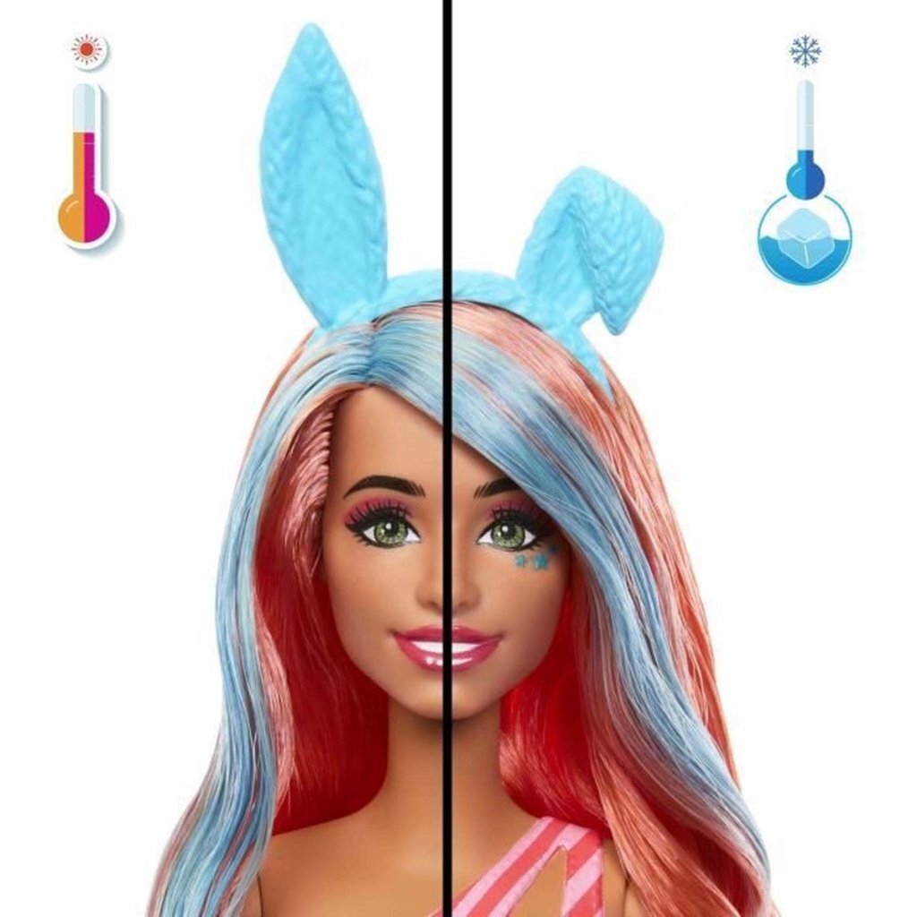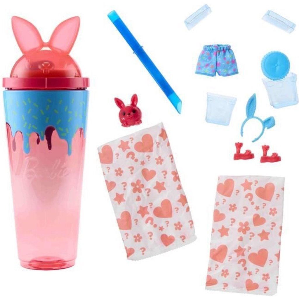 Draai het deksel in de vorm van een dierenoor met het glanzende Slijm los en prik met het rietje door het vlies voor zompig plezier. Pel het laagje van het kopje af om een Barbiepop met milkshakegeur en nog zeven verrassingen te onthullen! Welke pop heb jij? Er is een Lieve eenhoorn, een Schattige kitten of een Vrolijk konijntje. Maak de verpakking verder open om twee herbruikbare ijsblokjes te ontdekken die openspringen en een rok of korte broek en schoenen tevoorschijn tovert. Geheimzinnige zakjes onthullen een zompig, geurig bijpassend huisdier, een dierenbed en een hoofdband met dierenoren. Verras jezelf nog meer met een kleurverandering op het gezicht van Barbiepop. Kinderen willen ze allemaal verzamelen! Elke pop is apart verkrijgbaar en niet overal leverbaar. Poppen kunnen niet los staan. Kleuren en versieringen kunnen variƫren. Geschikt voor kinderen vanaf 3 jaar.