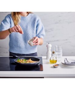 - Uitstekende antikleefeigenschappen dankzij de sterke keramische coating. Slechts weinig vet nodig om uw groenten, vlees en vis te bakken.