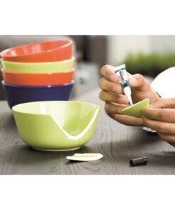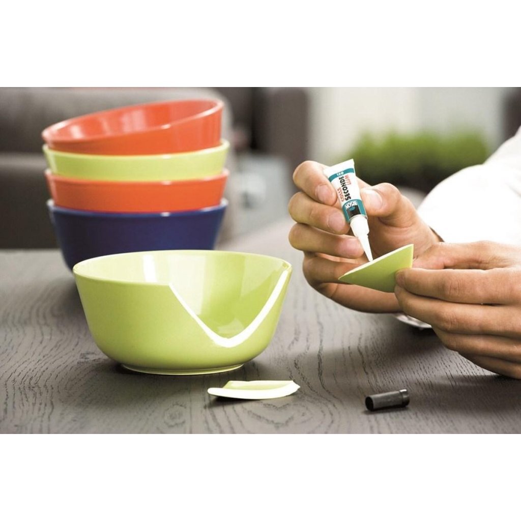 - Lijmt diverse materialen zoals aardewerk, porselein, kurk, hout, karton, metaal, rubber en vele kunststoffen