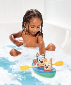Trek aan het koord achter de kano en roetsj… Bluey zal door je bad paddelen! Haal Bingo uit de kano en je kunt haar gebruiken als bekertje waarmee je water kunt scheppen en gieten. Of houd Bingo ondersteboven en laat het water door de gaatjes stromen, nu heb je een mini douche! Spelen met Bluey en Bingo is niet alleen heel erg leuk, maar het stimuleert ook fantasierijk spel en door de speelelementen, leer je oorzaak en gevolg kennen. In bad gaan was nog nooit zo leuk!