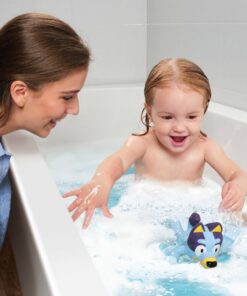 Bluey is een 6 jaar oude Heeler-hond die samen met haar familie de leukste avonturen beleeft. Speel nu in bad met deze zwemmende Bluey. Trek aan het zeepaardje en zie hoe Bluey een borstcrawl door het bad maakt! Wauw, wat kun je goed zwemmen, Bluey! Kinderen zullen vrolijk lachen als ze Bluey door het bad zien gaan en het schuim zien opspatten. Ook leuk om me te nemen naar het zwembad.
