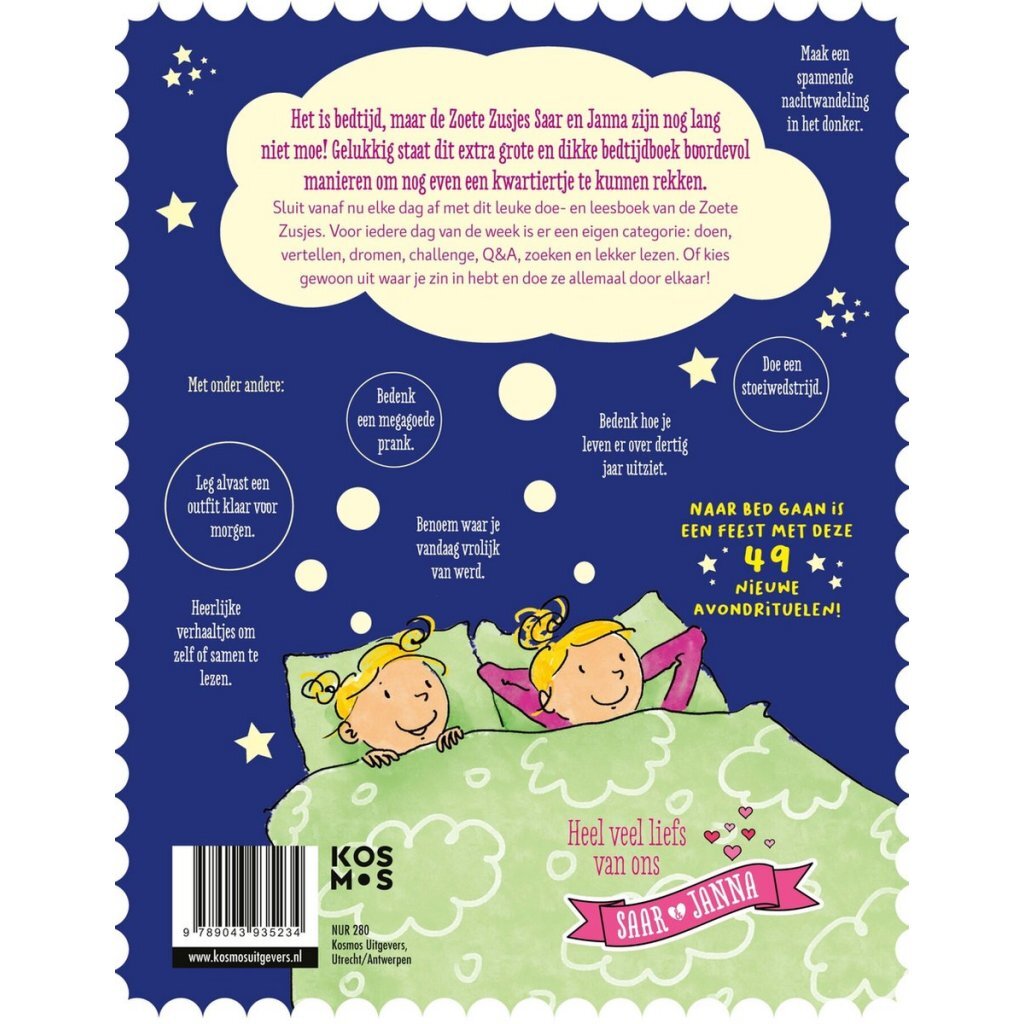 Het is bedtijd, maar de Zoete Zusjes Saar en Janna zijn nog lang niet moe! Gelukkig staat dit extra grote en dikke bedtijdboek boordevol manieren om nog even een kwartiertje te kunnen rekken. Sluit vanaf nu elke dag af met de Zoetje Zusjes. Voor iedere dag van de week is er een eigen categorie: doen, vertellen, dromen, challenge, Q&A, zoeken en lekker lezen. Of kies gewoon uit waar je zin in hebt en doe ze allemaal door elkaar!