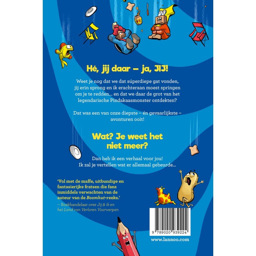 Weet je nog dat we dat súperdiepe gat vonden, jij erin sprong en ik erachteraan moest springen om je te redden… en dat we daar de grot van het legendarische Pindakaasmonster ontdekten?Dat was een van onze diepste – én gevaarlijkste – avonturen ooit!