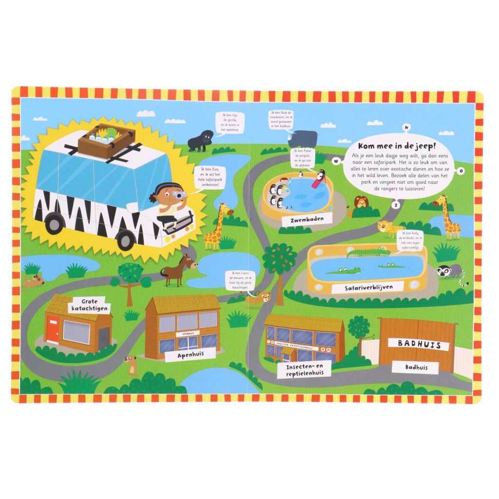 Dit gigagrote boek is de perfecte manier om kennis te maken met dieren van over de hele wereld. Kom mee naar het safaripark en kijk je ogen uit! De vrolijke illustraties maken het leuk voor kinderen om tijdens hun bezoek aan het park heel veel dieren te leren kennen. Met16 pagina’s. Geschikt voor kinderen vanaf 4 jaar.
