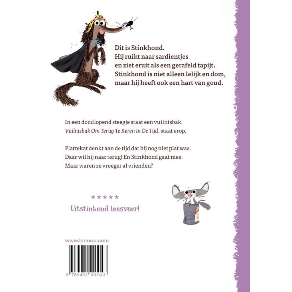 In een doodlopend steegje staat een vuilnisbak. Vuilnisbak Om Terug Te Keren In De Tijd, staat erop. Plattekat denkt aan de tijd dat hij nog niet plat was. Daar wil hij naar terug! En Stinkhond gaat mee. Maar waren ze vroeger al vrienden?