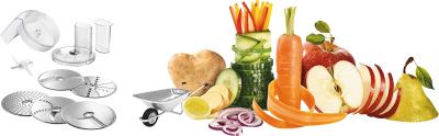 - een extra schijf voor Aziatische groenten en een aardappelrasp