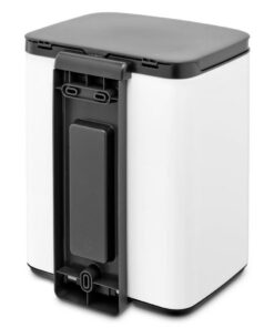Niet te groot, niet te klein, maar precies goed. Dat is de Brabantia Bo Afvalemmer 7 liter! Zet ‘r in een hoek, of hang ‘r aan de muur. Waar je maar wilt, want je tilt de deksel eenvoudig op vanaf de linker-, rechter- en voorkant van de bak. Dus geen spieren meer verrekken om iets weg te gooien. Een sprookje van een prullenbak!