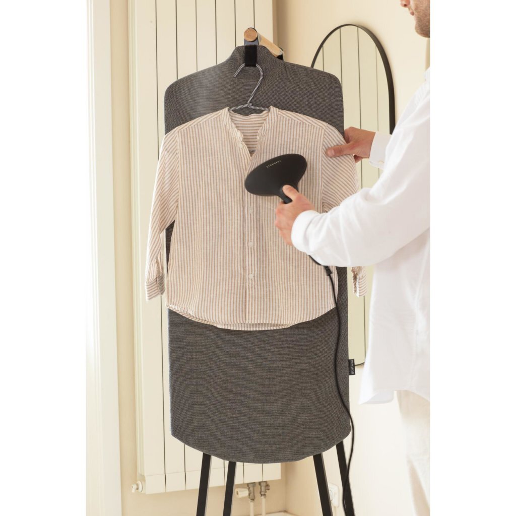 HetBrabantia Linn kledingstoombord voor het sneller elimineren van vervelende kreukels dan met strijken. Past op alle Linn Kledingrekken. Monteer het bord via de klittenband, stel in op jouw werkhoogte en je kunt stomen. Gemaakt van 31% gerecycled materiaal en 99% recyclebaar na gebruik. Met 5 jaar Brabantia garantie en service. Afmeting: 1,8 x 42 x 97 cm. Materiaal: textiel. Kleur: donkergrijs.