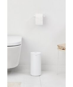 oud je stijl hoog, ook in het kleinste kamertje van je huis, met deze minimalistische Brabantia MindSet reserverolhouder. Houdt met plezier twee reserve toiletrollen voor je vast. De dichte behuizing beschermt de rollen tegen stof en spetters, heel hygiënisch en heel discreet. Tijd om van rol te wisselen? Haal er een omhoog met het slimme liftsysteem. Stijlvol, schoon en slim.