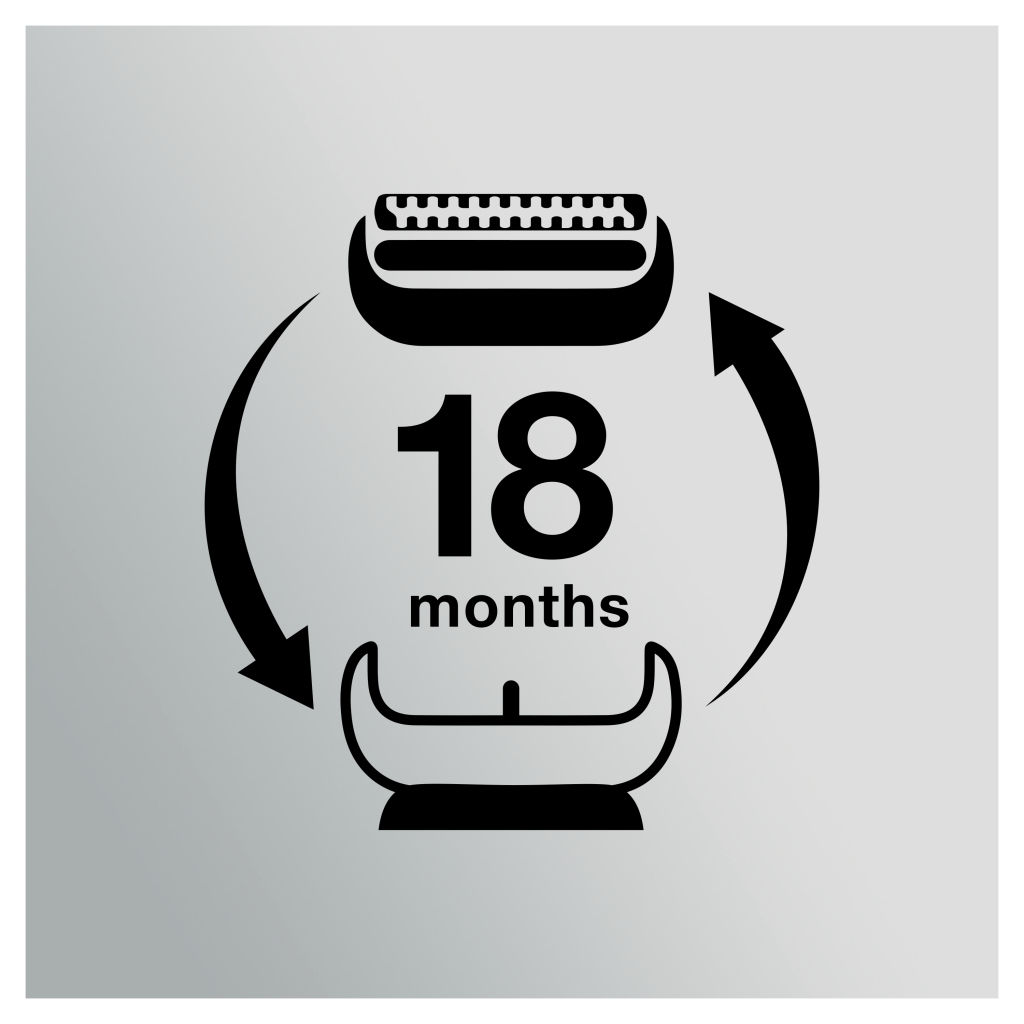 Over 18 maanden gespreid, scheert het scheerapparaat van Braun gemiddeld 6.000.000 haartjes. Dit gaat gepaard met een geleidelijke slijtage aan de scheerelementen, wat tot een minder comfortabele scheerbeurt kan leiden. Daarom raadt Braun je aan om je scheerblad en -mes elke 18 maanden te vervangen, zodat je scheerapparaat weer zo goed als nieuw is. Zorg voor je scheerapparaat, en het zal voor jou zorgen.