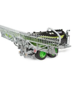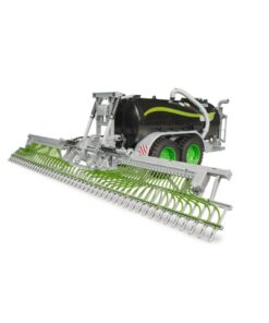 De nieuwe trailer van Fliegl breidt het landbouwassortiment van Bruder uit met de huidige stand van de kunstmesttechnologie. Het gedetailleerde model van Bruder is uitgerust met een sleepslangverdeelsysteem. De sleepslangverdeler kan voor wegtransport worden opgevouwen en in het veld weer worden uitgevouwen. De geïntegreerde tank kan worden gevuld met water en worden afgesloten met een deksel. De aanhangwagen wordt geleegd via een uitlaatklep aan de achterzijde van de aanhangwagen. De tractoren uit de 3000- en 4000-serie van Bruder zijn de perfecte tractor voor deze indrukwekkende trailer.