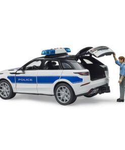 De Range Rover Velar speelt een leidende rol op het gebied van design, efficiëntie en prestaties.Bij de Velar komen elegantie en comfort samen in een voertuig dat nog steeds uitzonderlijk capabel is in het terrein.Met nieuwe hybride aandrijvingen tot 400 pk en geavanceerde vierwielaandrijvingstechnologie is dit terreinvoertuig opmerkelijk breed inzetbaar.Om buiten de stad, op moeilijk toegankelijk terrein, actief te kunnen zijn, worden de Bruder-hulpdiensten vergezeld door de politieversie Range Rover Velar.Het speelgoed is, net als het origineel, uitgerust met een cabine met 4 deuren.Alle deuren kunnen open en bieden ruimte voor 4 bworld figuren.Voor rijcomfort en offroad-mobiliteit is dit schaalmodel in schaal 1:16 voorzien van geveerde assen, waarbij de vooras stuurbaar is met de meegeleverde stuurwielverlenging.De achterklep kan geopend worden voor transport tijdens het spelen.De inbegrepen politieagent is goed uitgerust en voorbereid op verschillende mogelijke missies.