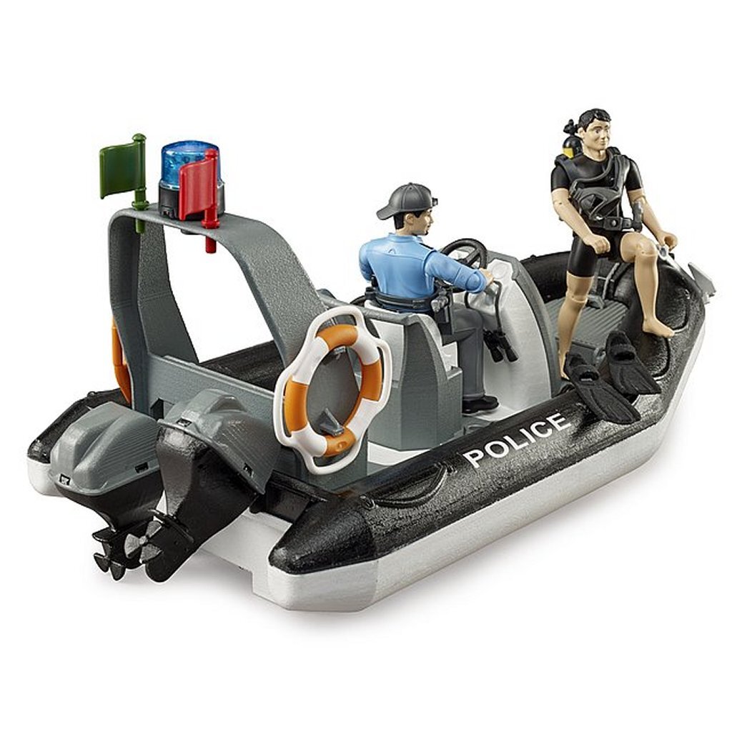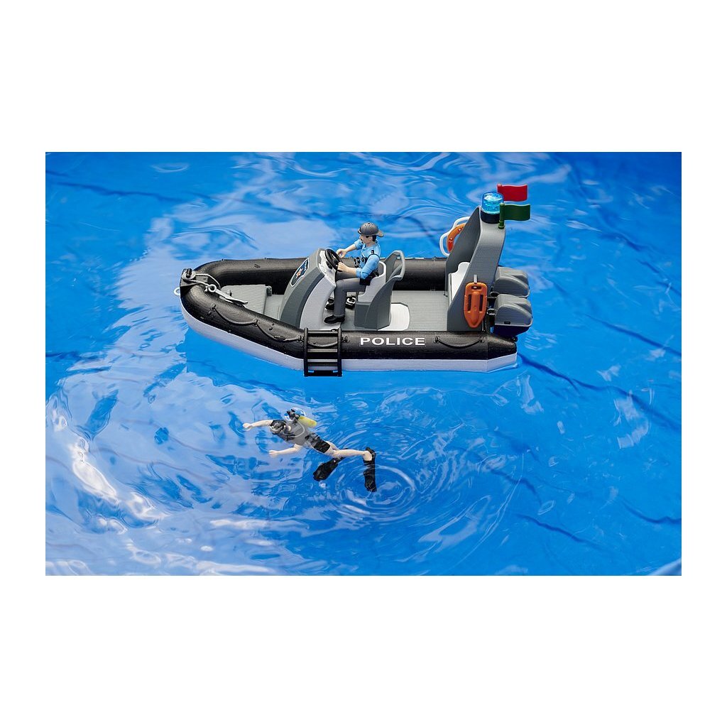 De politieboot met bedieningsconsole is door zijn wendbaarheid en veelzijdigheid een belangrijke hulp bij het dagelijkse politiewerk.Zodat kinderen deze operaties zo dicht mogelijk bij de werkelijkheid kunnen naspelen, is de politieboot natuurlijk drijvend en uitgerust met een rondom licht.Twee bworld figuren maken deze uitgebreide set compleet.Terwijl de politieagent de boot moet besturen, zorgt de volledig uitgeruste politieduiker voor de operaties in het water. Geschikt voor kinderen vanaf 4 jaar.
