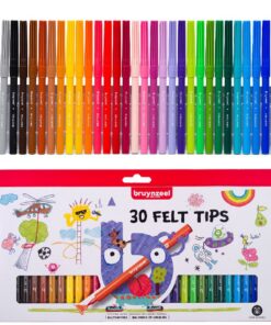 Met de viltstiften van hoogwaardige kwaliteit van Bruynzeel kun je de mooiste tekeningen maken en de mooiste kleurplaten inkleuren! Als je de stiften al een tijdje niet meer gebruikt hebt en ze een beetje uitgedroogd zijn, geef ze dan een tweede leven door ze in water te dompelen. Dankzij het plastic etui zijn de stiften gemakkelijk terug op te bergen in de kartonnen verpakking. Deze set bevat 30 verschillende kleuren viltstiften. Kenmerken: goede kleurafgifte – inkt op waterbasis – super uitwasbaar uit de meeste textielsoorten – glutenvrij.Geschikt voor kinderen vanaf 4 jaar.