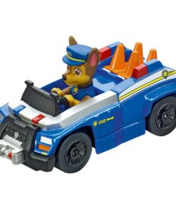 Je vrienden en helpers met vier poten – nu ook op je racebaan! Elk lid van de Paw Patrol heeft niet alleen zijn eigen speciale karakter, maar ook zijn eigen vervoermiddel dat vraagt om een race! Nu is alleen nog de vraag: welke van de schattige hondjes gaat er als winnaar vandoor? In deze On the Track Set nemen de onhandige Dalmatische Marshall met zijn brandweerwagen en de sportieve herdershond Chase met zijn politieauto het tegen elkaar op. De twee slotauto’s op schaal 1:50 bieden een spannend duel op het 2,4 meter lange racecircuit en racen langs de typische Paw Patrol-baandecoratie – gewoon heel cool! Op het circuit moet elke puppykart één keer per ronde door een tol. Dit zorgt voor een extra funfactor.De set bestaat uit twee kindvriendelijke snelheidsregelaars. Type C-batterijen zijn nodig om de auto’s te besturen.Lengte baan: 240 cm. Geschikt voor kinderen vanaf 3 jaar.