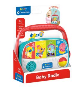 Clementoni Activity radio, waarmee kinderen naar muziek kunnen luisteren en met hun dierenvrienden kunnen spelen. Kies de zender met een van de 4 schakelaars en luister naar verschillende genres! Met kleurige oplichtende schakelaars die verschillende melodieën activeren en baby’s door spannende interactieve spelervaringen leiden, waarbij ze voortdurend op nieuwe manieren worden gestimuleerd. Ook zijn er kleine fysieke interacties om de cognitieve en fijne motorische vaardigheden te ontwikkelen. Elk dier is gekoppeld aan een muziekgenre, zodat het kind vertrouwd raakt met uiteenlopende ritmes: popstijl voor de hond, rock voor de haan, rap voor de poes en rustgevende geluidjes voor de vogel. Er zijn vier grote schakelaars die kunnen worden ingedrukt om de diergeluiden en de bijbehorende muziek te horen, een bal die de handvaardigheid stimuleert en een handvat om de radio aan te dragen. Wordt inclusief 2 AAA-batterijen geleverd. Geschikt voor kinderen vanaf 6 maanden.