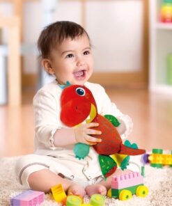 Een lieve en leuke dinosaurus waarmee je veel plezier kunt beleven en tegelijkertijd vermaakt kunt worden! Door op de centrale knop te drukken worden leuke melodietjes afgespeeld die het brabbelen aanmoedigen. Een ontzettend schattig product waarmee kinderen kunnen knuffelen en dat ze altijd bij zich kunnen dragen. De verschillende materialen en ritselende onderdelen stimuleren de multisensoriële ontwikkeling van babys. Kinderen zullen zich onmiddellijk verbonden voelen met deze lieve dinosaurus en zijn schattige gezichtje dat hen aanmoedigt een emotionele band te vormen en genegenheid en empathie te ontwikkelen.