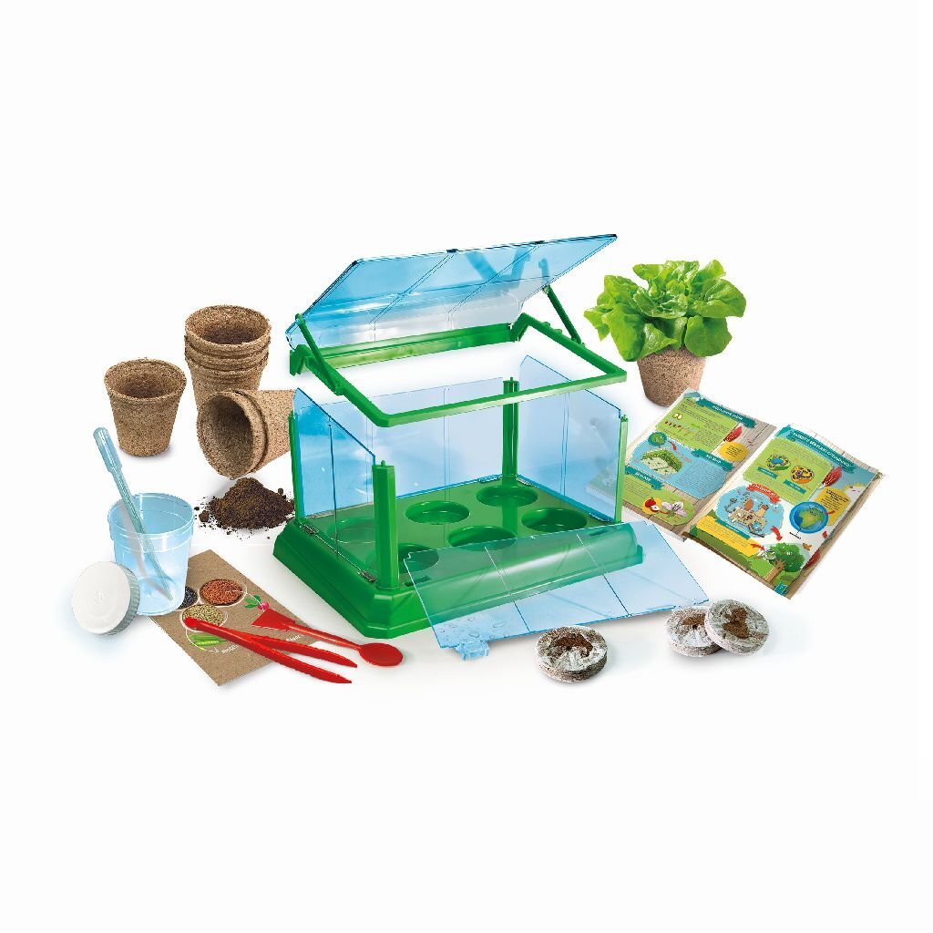 De educatieve kas is de perfecte set voor diegenen die de botanische wereld van dichtbij willen ervaren en voor veel planten willen zorgen. Compleet met een configureerbare transparante kas, turf, zaden en vele andere elementen, met deze kit kun je een ervaren botanicus worden en jouw wetenschappelijke vaardigheden testen! De rijk geïllustreerde handleiding geeft je veel informatie over plantgroeifactoren en chlorofylfotosynthese. Geschikt voor kinderen vanaf 8 jaar.