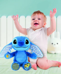 De nieuwe ultrazachte en tedere gigantische knuffel is perfect om kinderen gezelschap te houden terwijl ze slapen. Door op de knop te drukken kan het kind luisteren naar deuntjes, kinderliedjes en verschillende geluidseffecten. Stitch zal zijn Hawaiiaanse melodieën zingen om samen met hem te dansen. Een ideaal speeltje om het kind te stimuleren. Aanbevolen leeftijd: + 0 maanden.