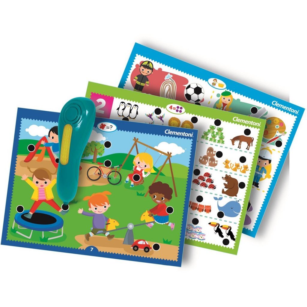 Met dit educatief spel van Clementoni en de pratende pen wordt leren een echt avontuur! De pratende pen begeleidt je door meer dan 1000 vragen en quizzen over letters, woorden, getallen, vormen en kleuren. Zo leer je spelenderwijs en kun je jezelf én je vrienden uitdagen voor een spannende kenniswedstrijd. De kleurrijke kaarten en de vrolijke pen maken leren extra leuk. Je krijgt direct feedback op je antwoorden, waardoor je zelfstandig kunt oefenen en groeien. Ideaal voor nieuwsgierige kinderen vanaf 5 jaar die graag willen ontdekken en leren.