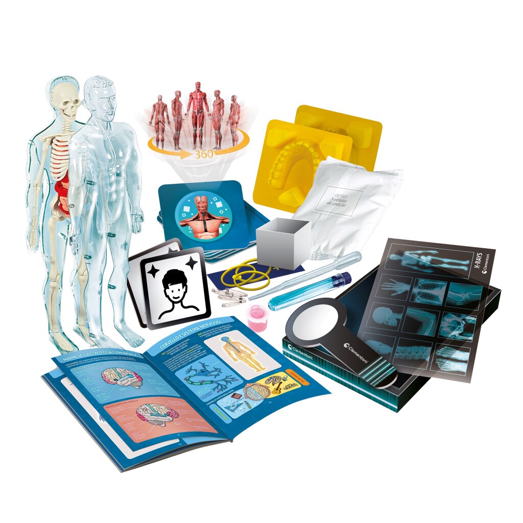 Een grote wetenschapsklassieker die op een moderne, interactieve en leuke manier opnieuw wordt uitgebracht. Een fantastisch spel om eenvoudig de anatomie van het menselijk lichaam te leren kennen. Skeletten en organen om te monteren, tandbogen om te reconstrueren en vele activiteiten om de 5 zintuigen te ontdekken. Een interactieve app waarmee je via de toegevoegde realiteit de hoofdorganen van het menselijk lichaam kunt ontdekken en veel informatie en wetenschappelijke weetjes leert kennen. AR modus (augmented reality – Engels voor toegevoegde realiteit): doe de QR code aan die je in de kit vindt en ontdek de geheimen van de menselijke anatomie. Ontdek modus: bekijk de 3D modellen van de voornaamste organen die je kunt vergroten en draaien om hun werking beter te begrijpen. Quiz kaarten en Mix kaarten: interactieve spelen en leuke quizzen met tijd, om jezelf te testen en een genie te worden van de anatomie! Geschikt voor kinderen vanaf 8 jaar.
