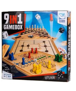 Deze set bevat 9 spellen: schaken, dammen, backgammon, domino, ludo, dobbelspel, Cribbage, Morris en speelkaarten. Dit is echt een super-complete set!