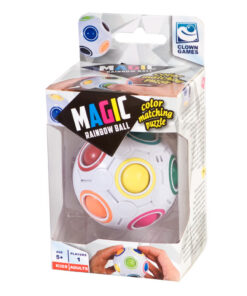 Bij deze leuke puzzelbal draait het erom, zo snel mogelijk alle balletjes op de juiste plek te krijgen. Denk logisch na en puzzel alle gekleurde balletjes bij de ring in de juiste kleur! De Magic Puzzelbal bevat gekleurde balletjes en heeft één opening. De balletjes, die grenzen aan deze opening, kun je verplaatsen. Probeer in zo weinig mogelijk verplaatsingen alle balletjes op de juiste plek te puzzelen! Inhoud: Magic Rainbow ball en handleiding. Geschikt voor kinderen vanaf 5 jaar.