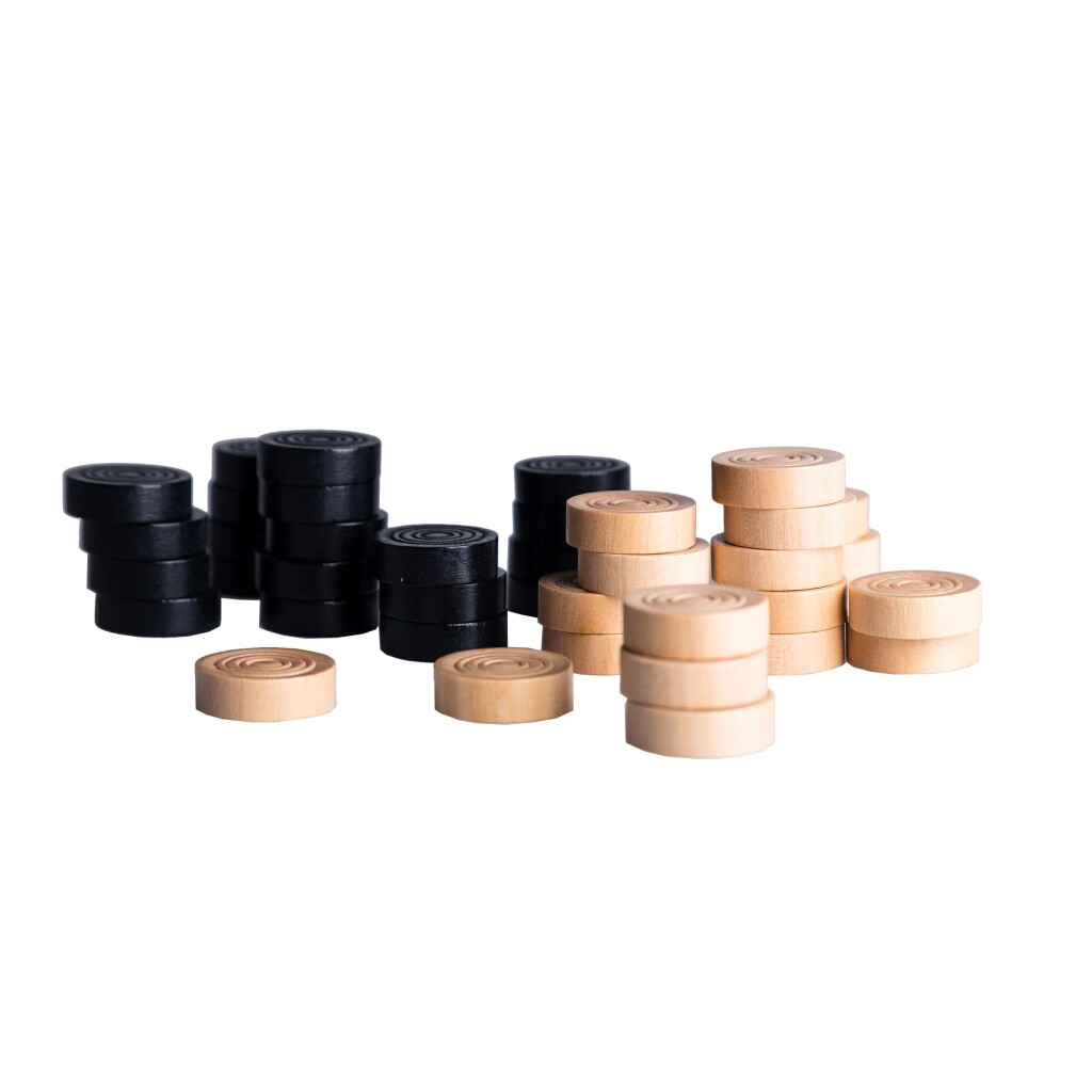 Ga jij je tegenstander te slim af zijn? Deze damstenen hebben een diameter van 3 cm en zijn gemaakt van gelakt hout.