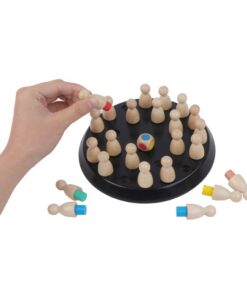 Plaats alle pionnen willekeurig op het Houten bord en onthoud welke kleur ze hebben. Rol met de dobbelsteen en probeer de pion met de kleur die je rolt van het bord te pakken. Pak je de juiste pion, dan is deze van jou en mag je doorspelen! De speler met de meeste pionnen wint. Inhoud: Spelbord, 24 gekleurde pionnen en een dobbelsteen met kleurvlakken. Diameter bord: 18 cm. Geschikt voor 2 spelers vanaf 5 jaar.
