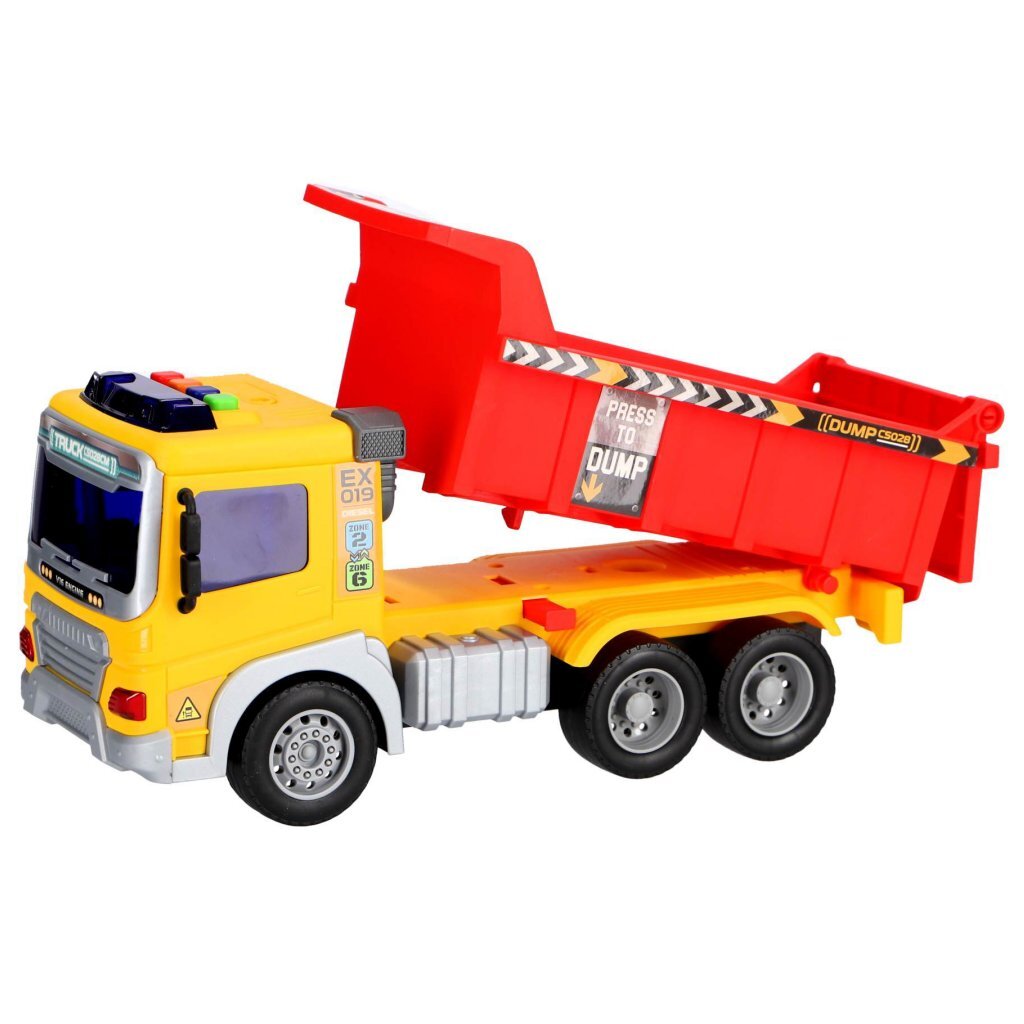 Stoere constructie truck van 30 cm, met werkende kiepbak. De truck heet realistische licht- en geluidseffecten, en is gemaakt van stevig kunststof. Frictie-aangedreven. Geschikt voor kinderen vanaf 3 jaar.