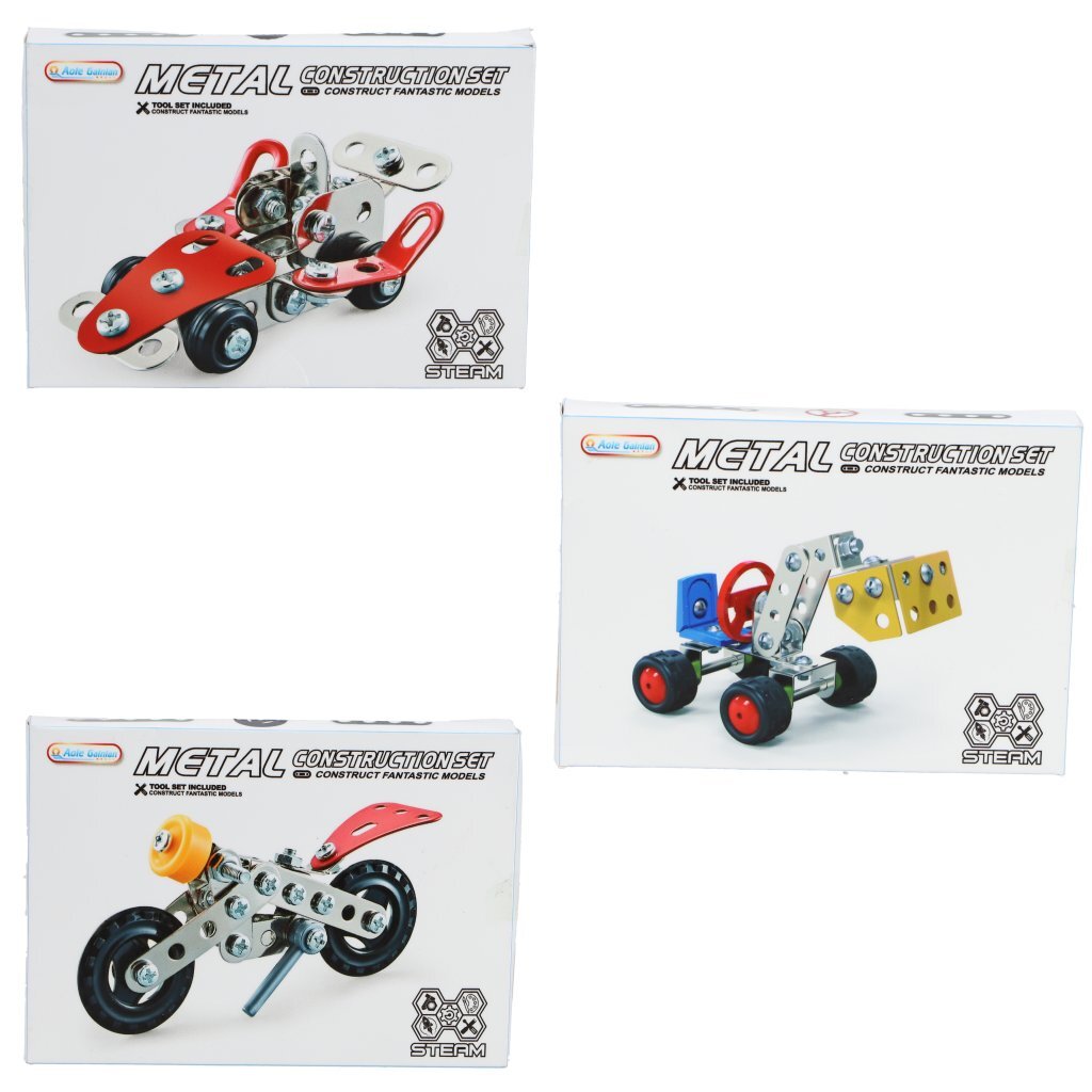 Deze set bevat alles wat kinderen nodig hebben om hun eigen voertuigen te bouwen. Er zijn 4 verschillende versies beschikbaar: motor, vliegtuig, racewagen en graafmachine. Welke versie je ook ontvangt, het belooft een geweldig bouwavontuur! De constructieset bestaat uit stevige metalen onderdelen en rubberen banden, waardoor de voertuigen duurzaam en realistisch zijn. Kinderen kunnen hun technische vaardigheden ontwikkelen terwijl ze de onderdelen in elkaar zetten en hun eigen voertuig creëren. Deze constructieset is speciaal ontworpen voor kinderen vanaf 6 jaar, waardoor het een geweldig educatief speelgoed is dat hun creativiteit, probleemoplossende vaardigheden en fijne motoriek bevordert. Elke versie biedt unieke bouwmogelijkheden, waardoor kinderen steeds weer nieuwe uitdagingen en speelplezier hebben.