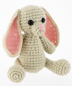 n dit pakket zitten alle benodigdheden om dit schattige konijntje te haken! Met beige en rode draad en de haaknaald en de oogjes van het konijn, heb jij binnen no time een konijntje gehaakt! Wat een schattig konijn, met zijn roze neusje en lange hangoren.