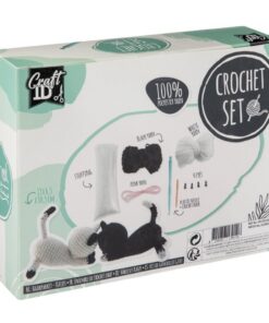 Haakset voor het maken van twee schattige katjes. Het pakket bevat wit, zwart en roze wol, vulling, 4 oogjes, een plastic naald en haaknaald. De katjes zijn 13 x 6,5 x 10,5 cm groot. Geschikt voor kinderen vanaf 12 jaar.