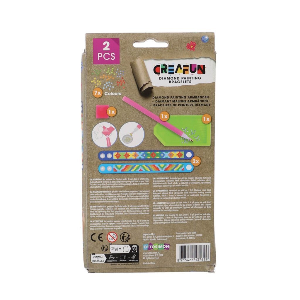 Een creatieve set waarmee kinderen hun eigen armbanden kunnen versieren met kleurrijke diamantsteentjes. Geschikt voor kinderen vanaf 6 jaar, perfect voor knutselplezier en het maken van unieke sieraden!