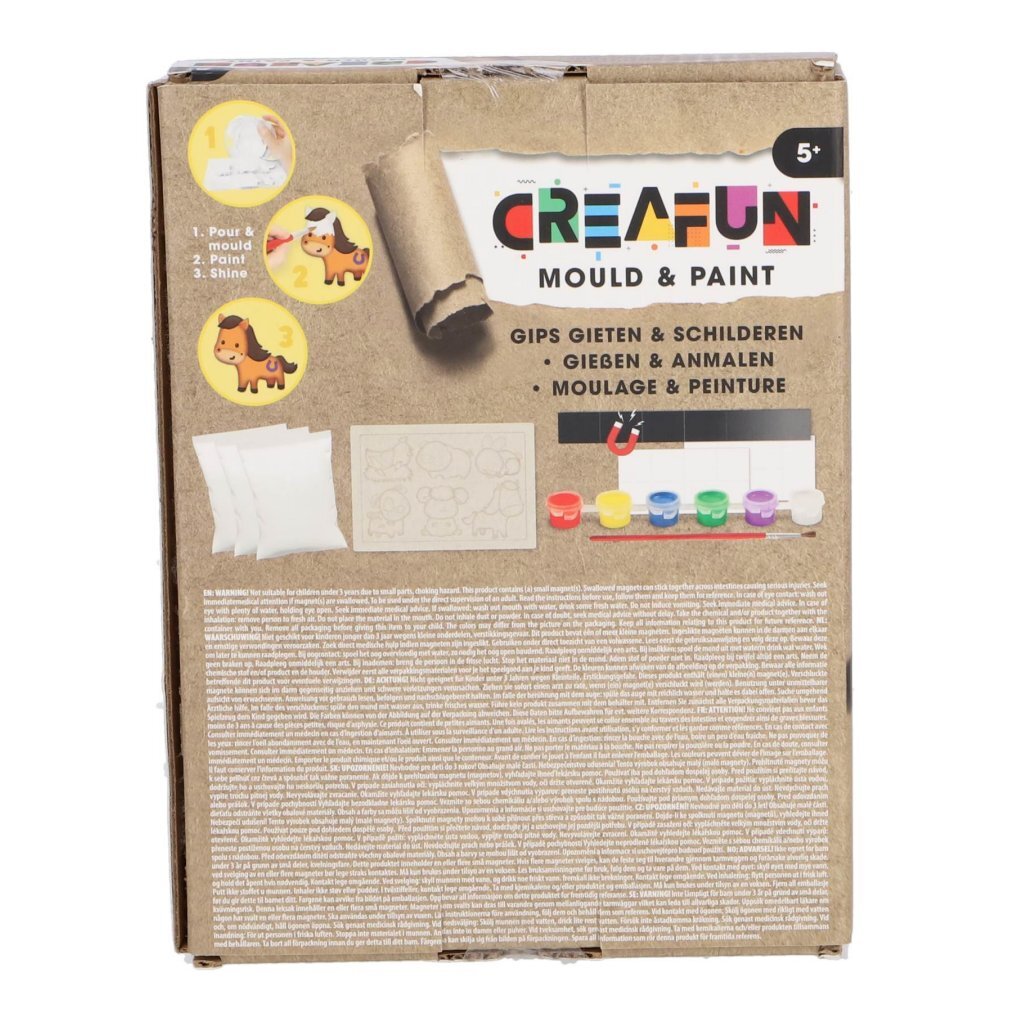 MetCreafun gips gieten boerderij maak je op een leuke en creatieve manier je eigen boerderijfiguren. Giet je favoriete dieren in gips en schilder ze daarna in de mooiste kleuren. Perfect voor knutselmomenten met vrienden of familie! Geschikt voor kinderen vanaf 5 jaar.