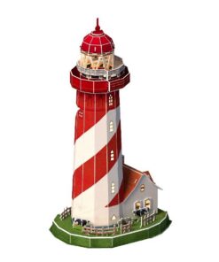 Hollandse vuurtoren met LED-verlichting. Geen gereedschap of lijm nodig. Bestaat uit 51 stukjes. Formaat: 21 x 39,4 x 15,6 cm. Geschikt voor kinderen vanaf 8 jaar.