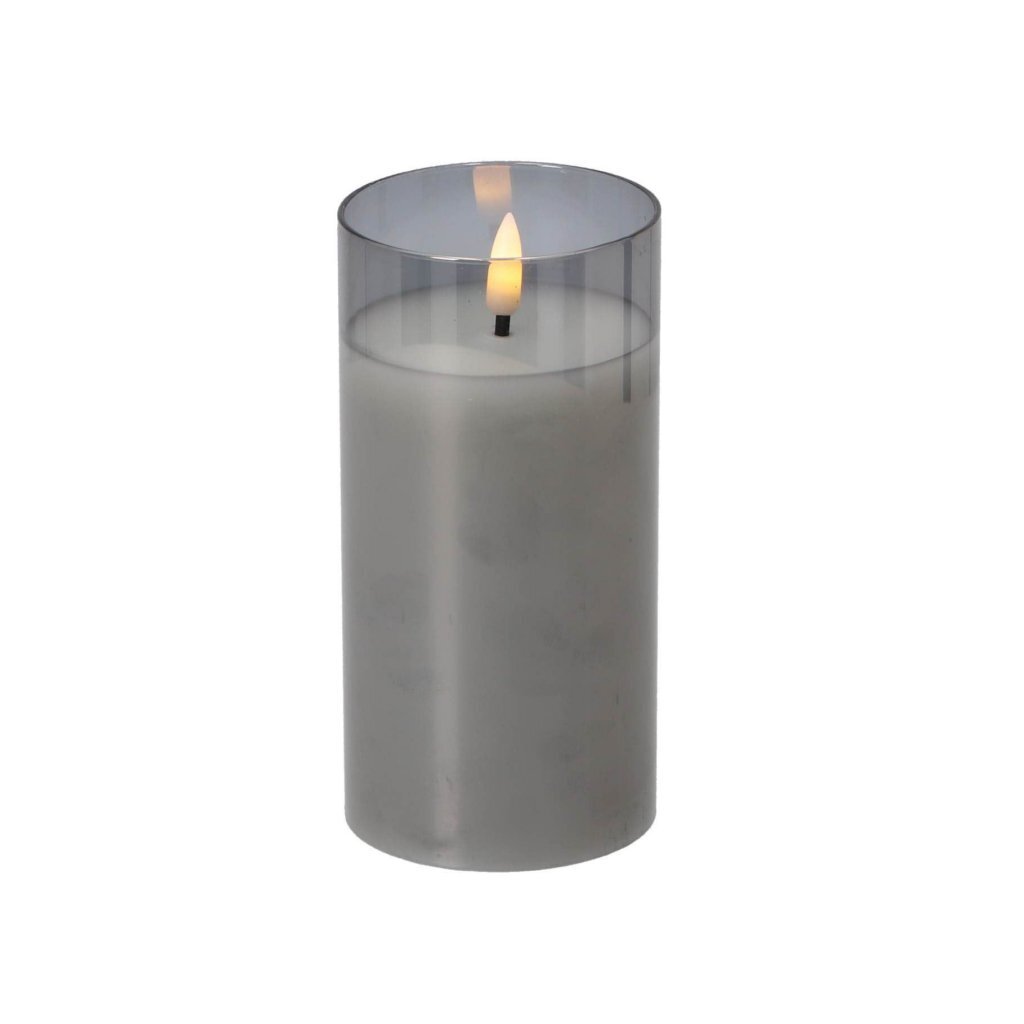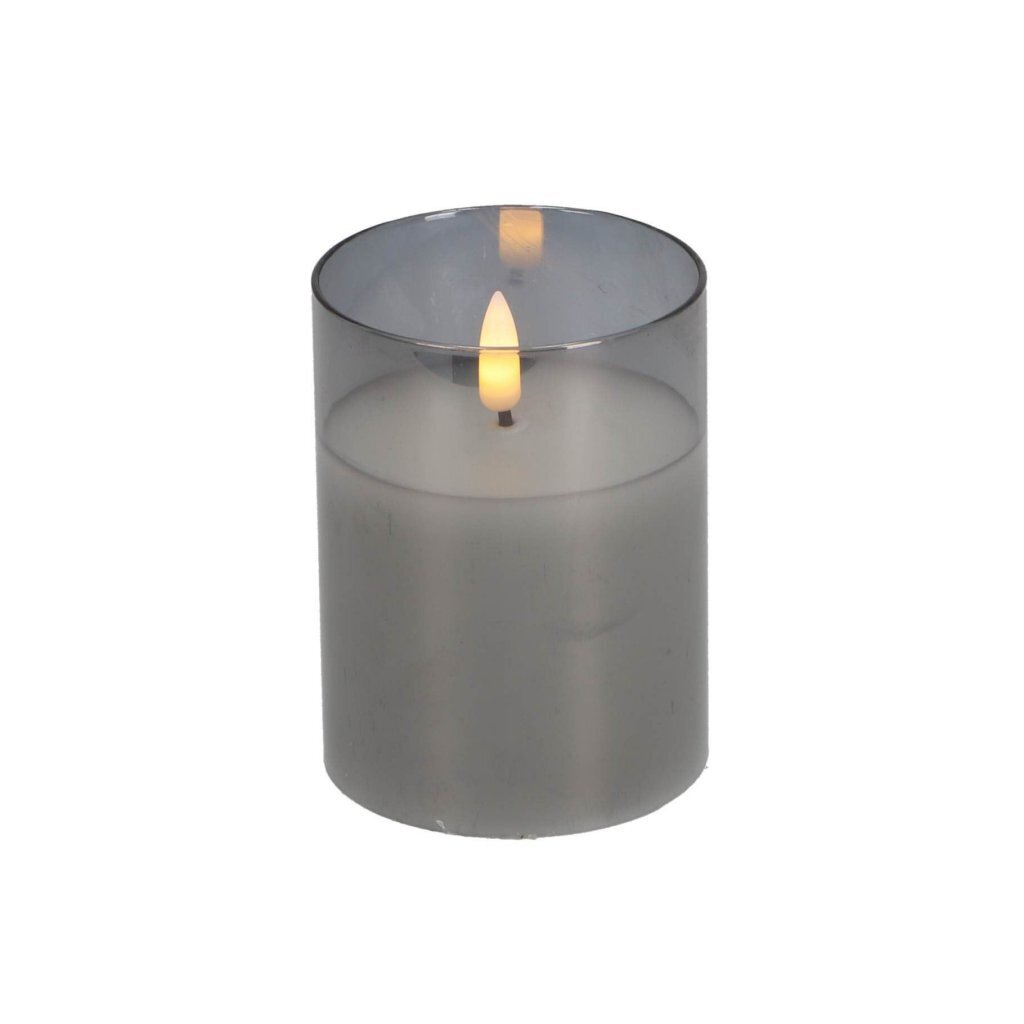Set van drie LED-kaarsen van Daily Home, uitgevoerd in grijs glas. Werkt op batterijen en wordt geleverd met afstandsbediening. Inclusief timerfunctie, dimmer en twee lichtstanden. Geschikt voor gebruik binnenshuis.