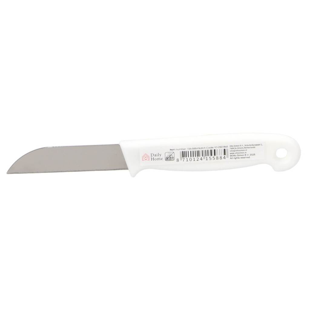 Compact schilmes van Daily Home met roestvrijstalen lemmet en wit kunststof handvat. Geschikt voor schillen van groenten en fruit. Voorzien van ophangoog. Lichtgewicht en ergonomisch ontwerp.