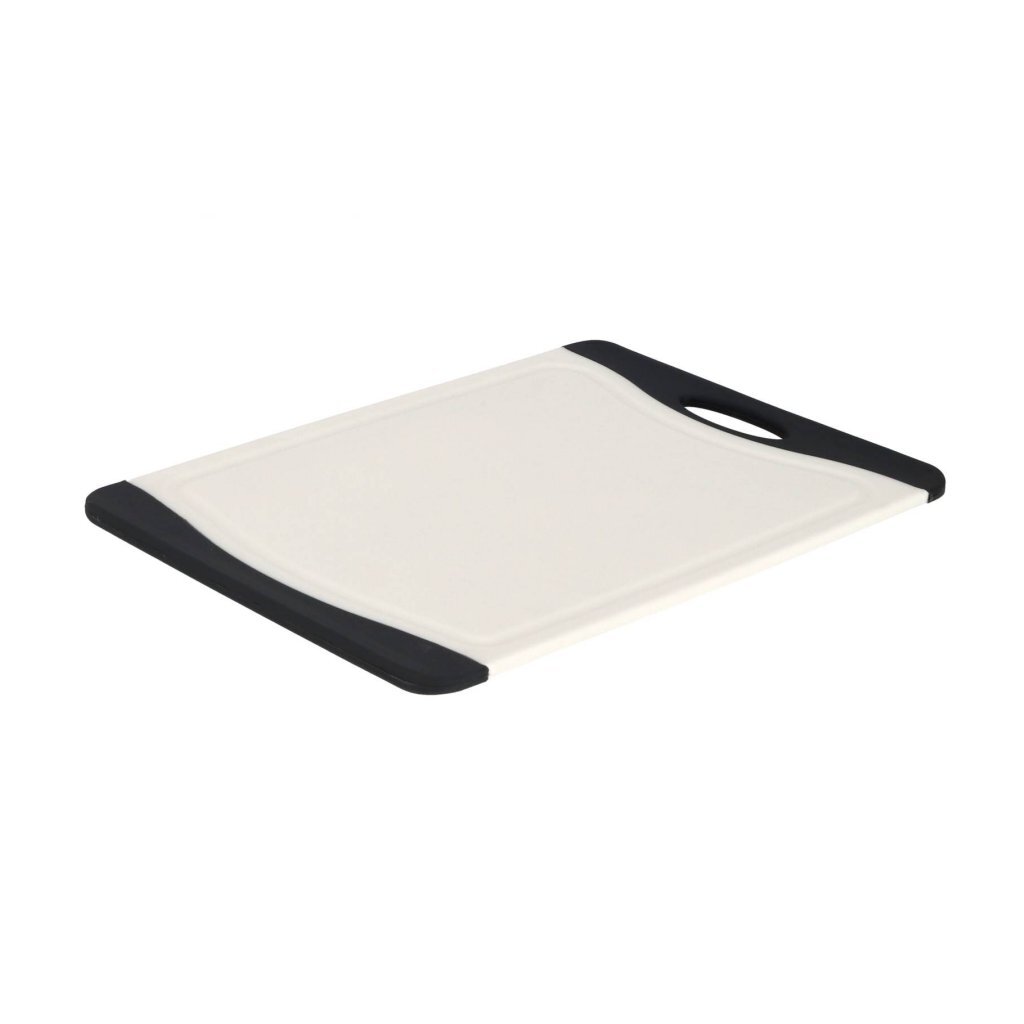 Grote snijplank van Daily Home, formaat 36,8 x 25,5 cm. Gemaakt van stevig polypropyleen met antislip randen en handgreep. Hygiënisch, duurzaam en geschikt voor dagelijks gebruik. Kleur: zwart/wit.